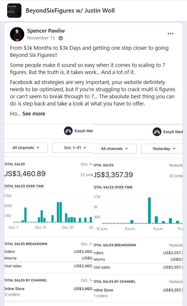 My friend and business partner, Justin Woll, is a rockstar when it comes to coaching people just like you. And his BeyondSixFigures program has so many success stories that its been recognized by both Shopify and Forbes.